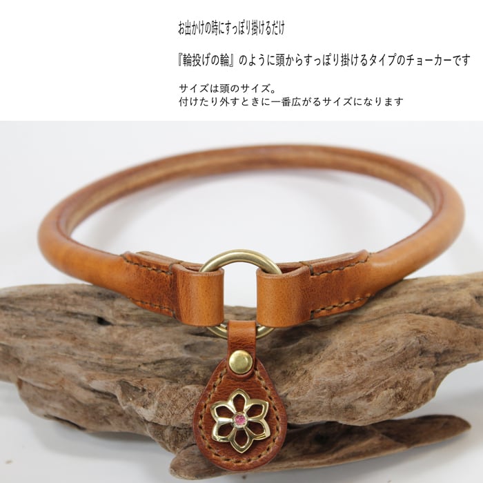 分厚いイタリアンレザーの丸革チョーカーは力強い大型犬でもしっかり制御できます。