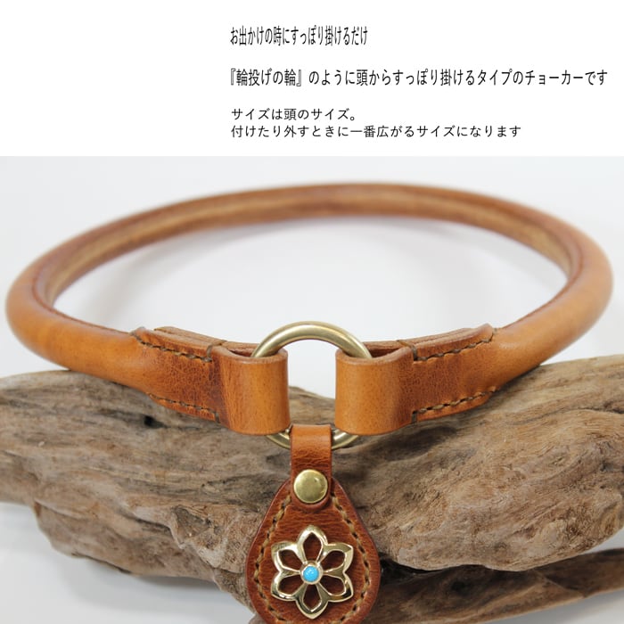 真鍮コンチョが胸元にきらりと光る大型犬用のチョーカー。