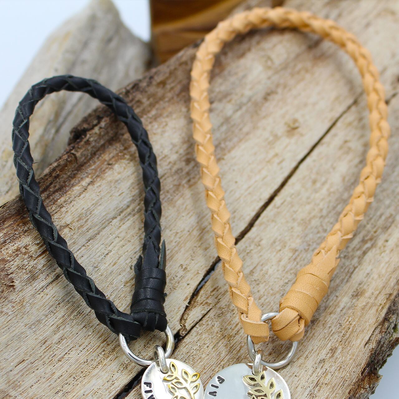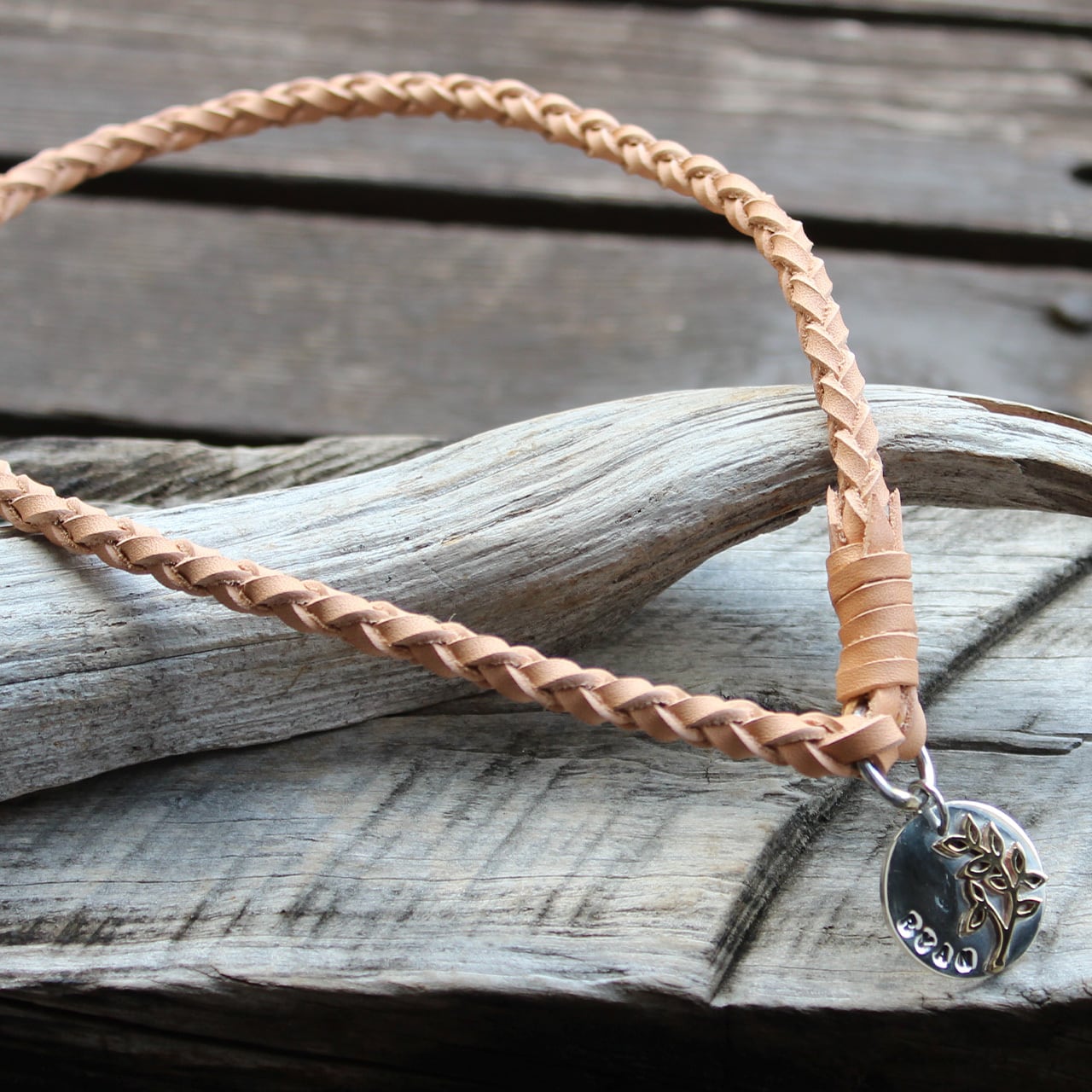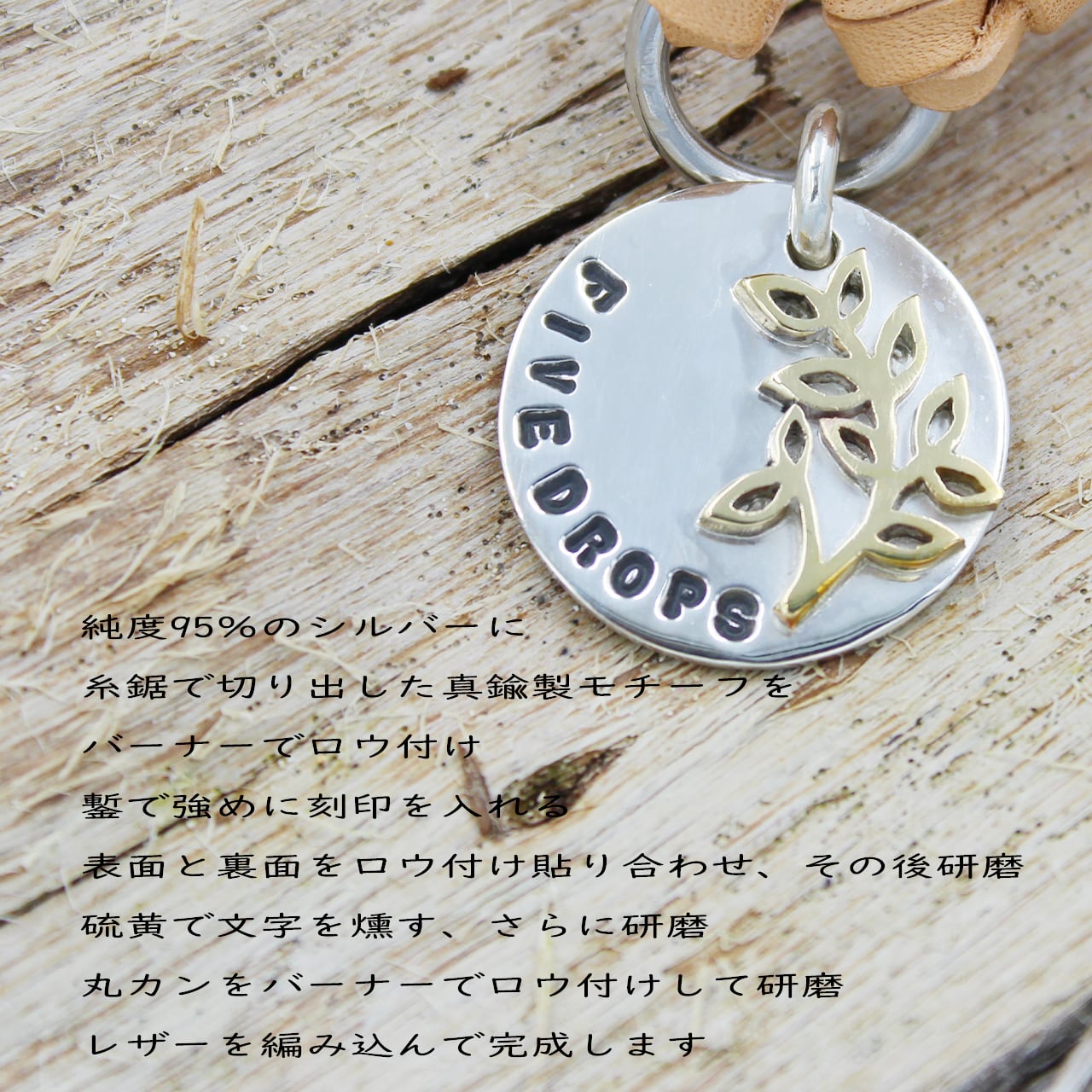 シルバートップのレザーチェーンネームタグLEAFです