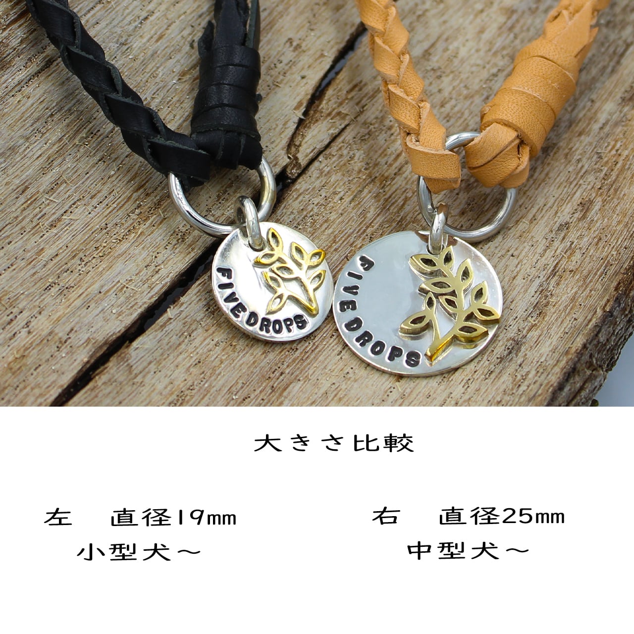 シルバーペンダントトップ レザーチェーンネームタグ すっぽりタイプ LEAF 25㎜ 中型犬~大型犬まで